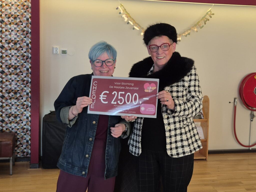 Ans Gasseling, Caritas De Liemers, deelt uit aan Stichting De Maatjes!